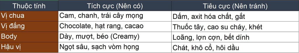 Đắng sạch (Clean Bitterness): Là vị đắng quyện lẫn với hương chocolate đen, hạt rang hoặc thảo mộc. Vị đắng này tan nhanh và để lại hậu vị ngọt.