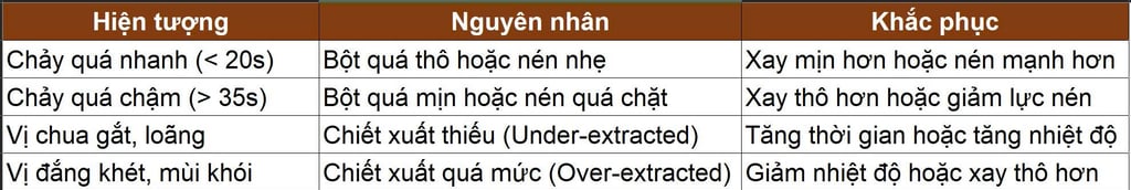 Thời gian chiết xuất (Yield Time): 25 - 30 giây.