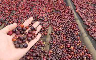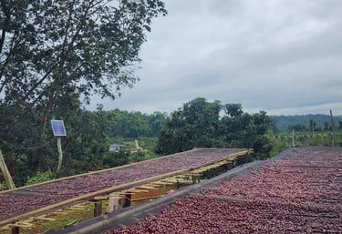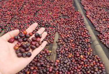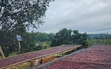 Hành trình bắt đầu từ trang trại cà phê Rovie , nơi con người học cách làm việc cùng Mẹ thiên nhiên thay vì can thiệp quá mức. Mỗi mùa thu hoạch, chỉ những trái cà phê chín đạt độ hoàn thiện mới được lựa chọn, đảm bảo hương vị tròn đầy ngay từ khâu đầu tiên. Sau thu hoạch, cà phê được sơ chế theo phương pháp Natural (khô tự nhiên), được phơi trên giàn, hấp thụ nguồn nắng và gió trời để hạt cà phê phát triển hương vị một cách chậm rãi và tự nhiên nhất.