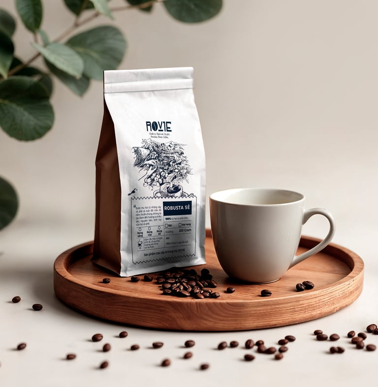 " Cà phê Rovie đậm vị, uống vào tỉnh táo rõ rệt. Mùi hương tự nhiên, không gắt, đúng chất Robusta Việt Nam nguyên bản."